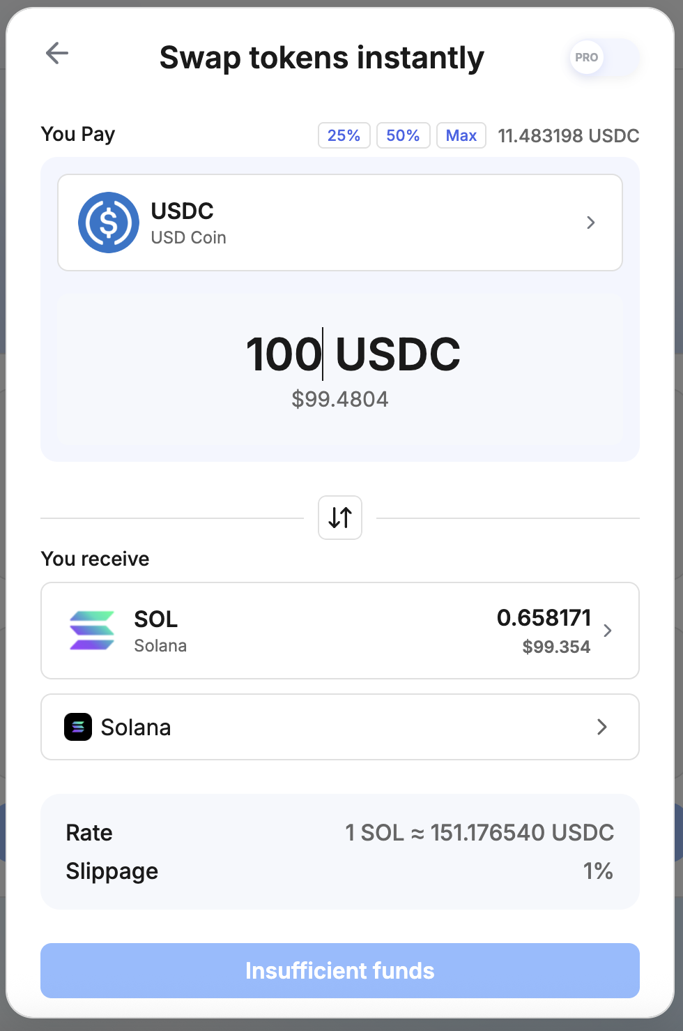 A headless swap is a swap that's executed directly from the context of the parent application without triggering the embedded wallet swap popup. This alternate method can be used when the app wants complete end-to-end control over the swap UX without relying on the embedded wallet's swap interface.